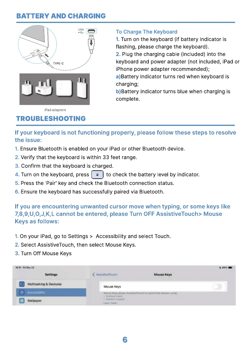 Ensure Bluetooth is enabled on your iPad or other Bluetooth device.