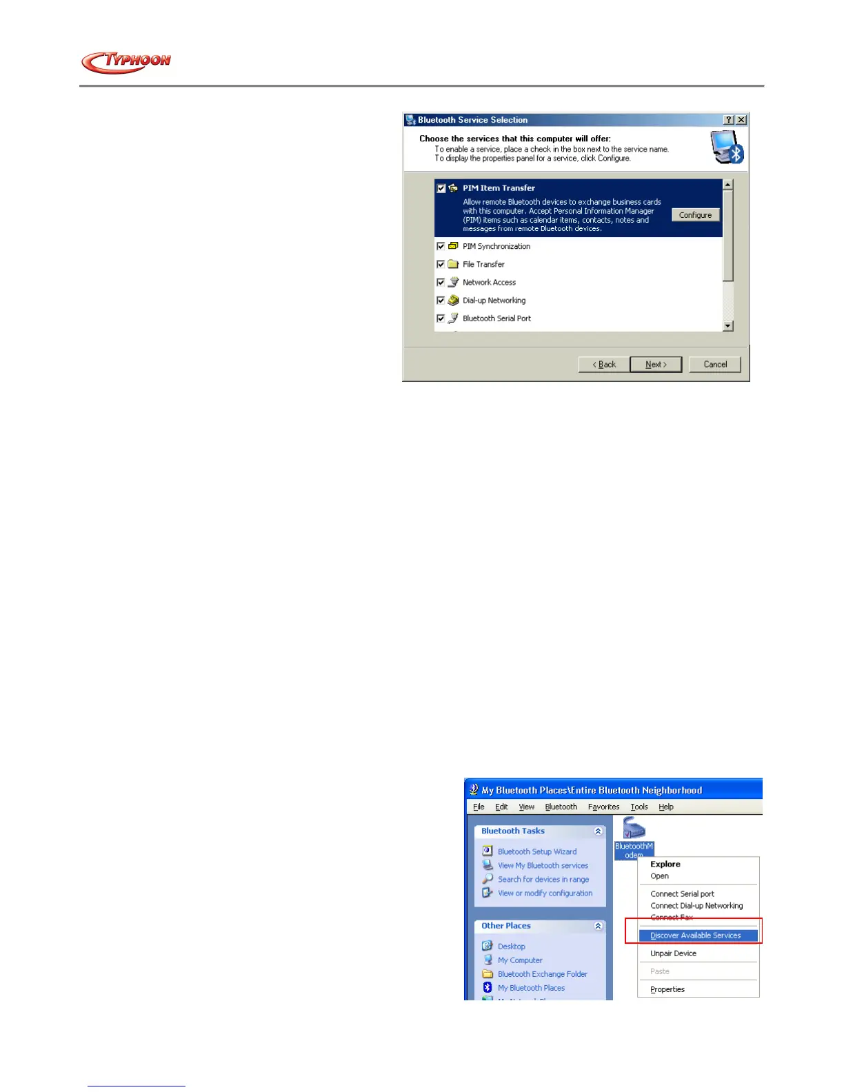 hardware. The Bluetooth™ Serial Port service, for example,