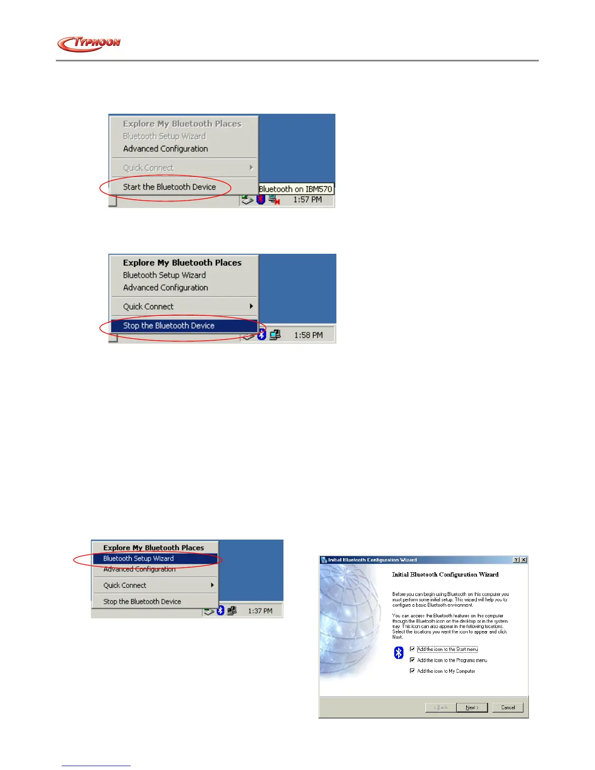 1. To start Bluetooth™: in the Windows system tray, right-click the Bluetooth™ icon and select "Start