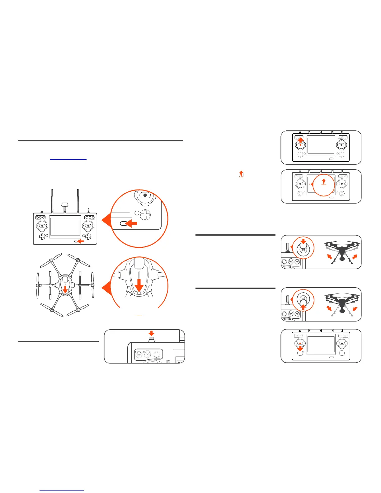 Zwolnij przycisk, gdy dron wyda dźwięk o narastającej częstotliwości. Włącz