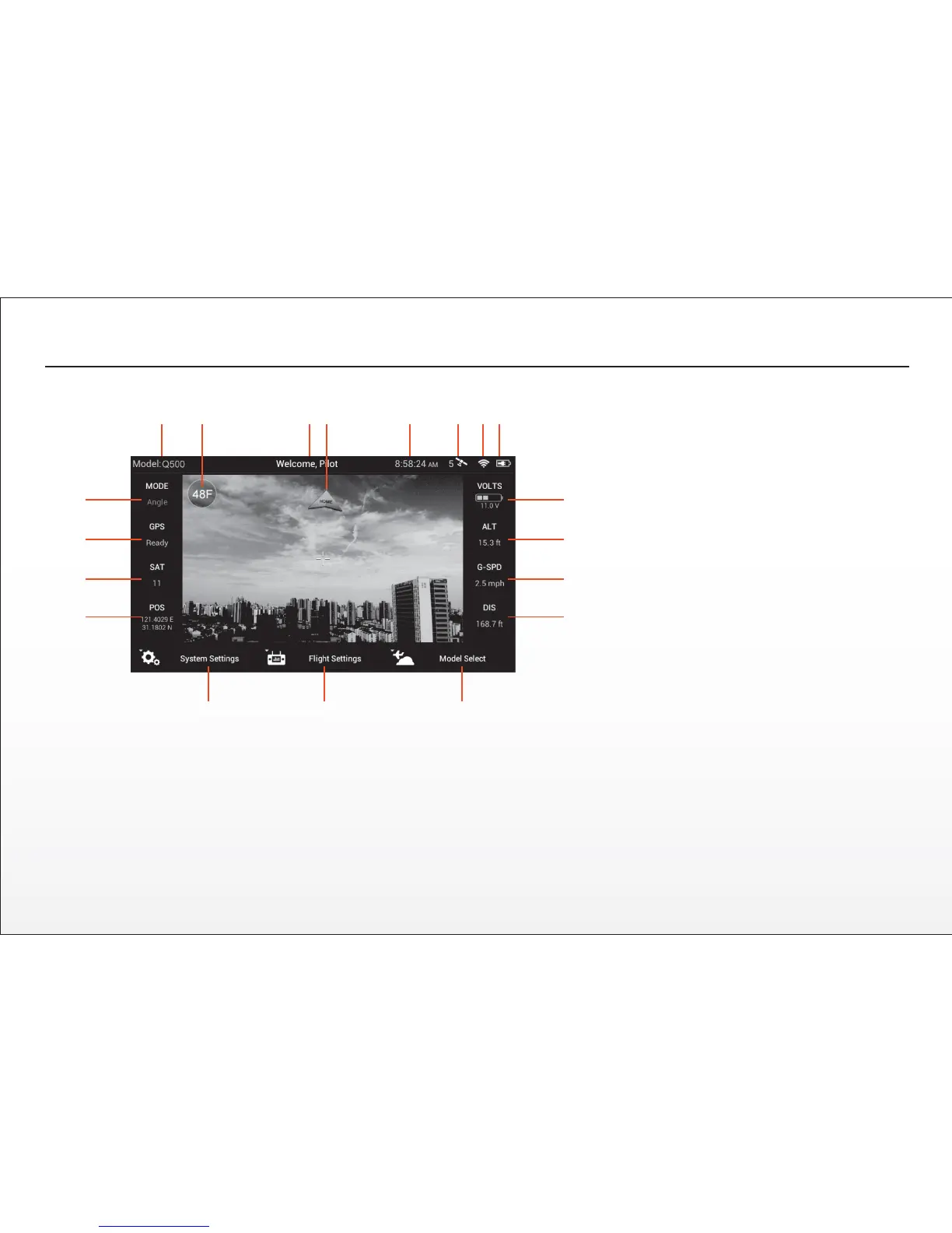 WARNING: NEVER aempt to fly the Q500 via First-Person View (FPV). There’s a slight ‘lag’ in the CGO2-GB streaming video downlink to the ST10, and