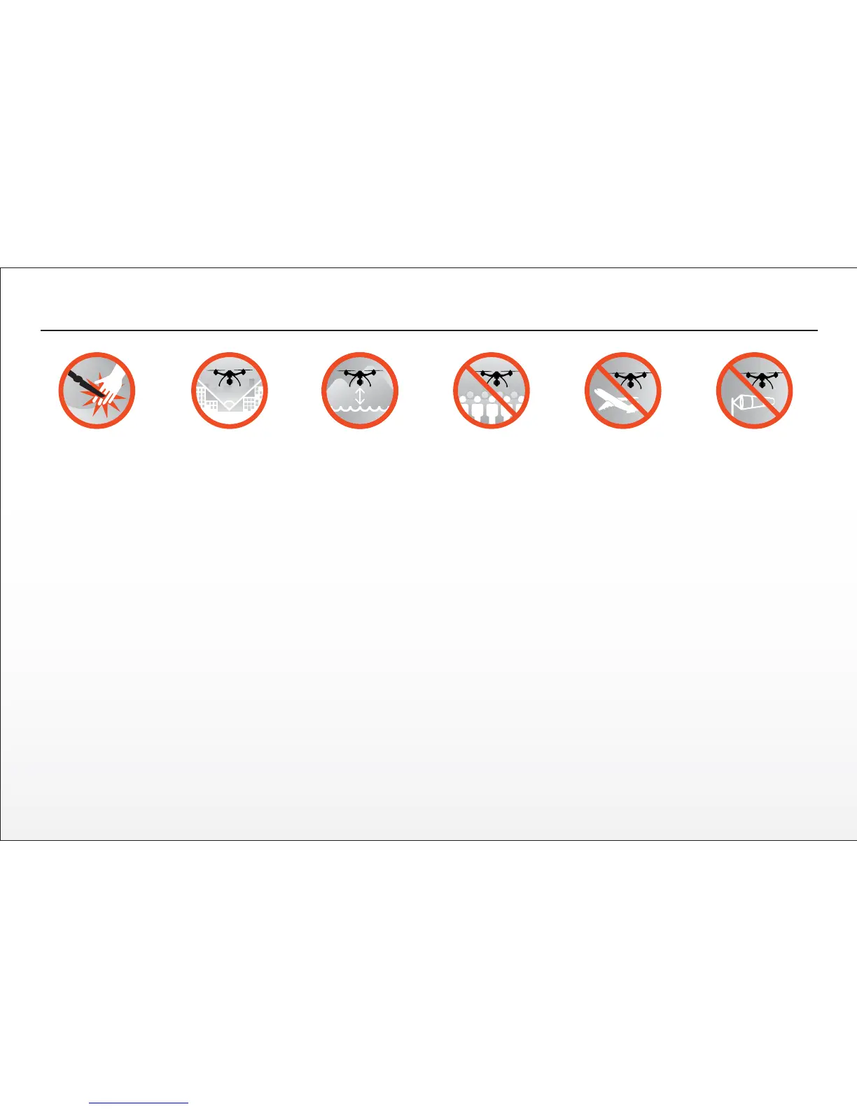• Always operate your aircra in open areas that are free from people, vehicles and other obstrucons. Never fly near or above crowds, airports or