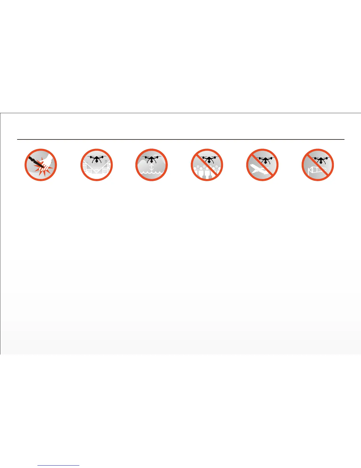 • Always operate your aircra in open areas that are free from people, vehicles and other obstrucons. Never fly near or above crowds, airports or