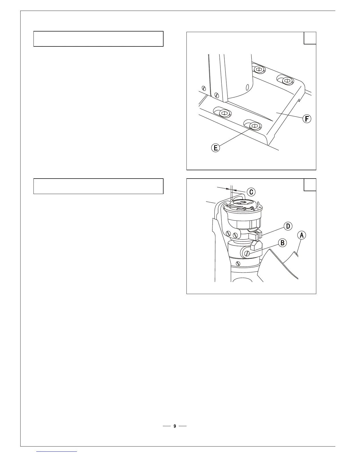 7. Loosen the screw E, and move the post-bed F leftward