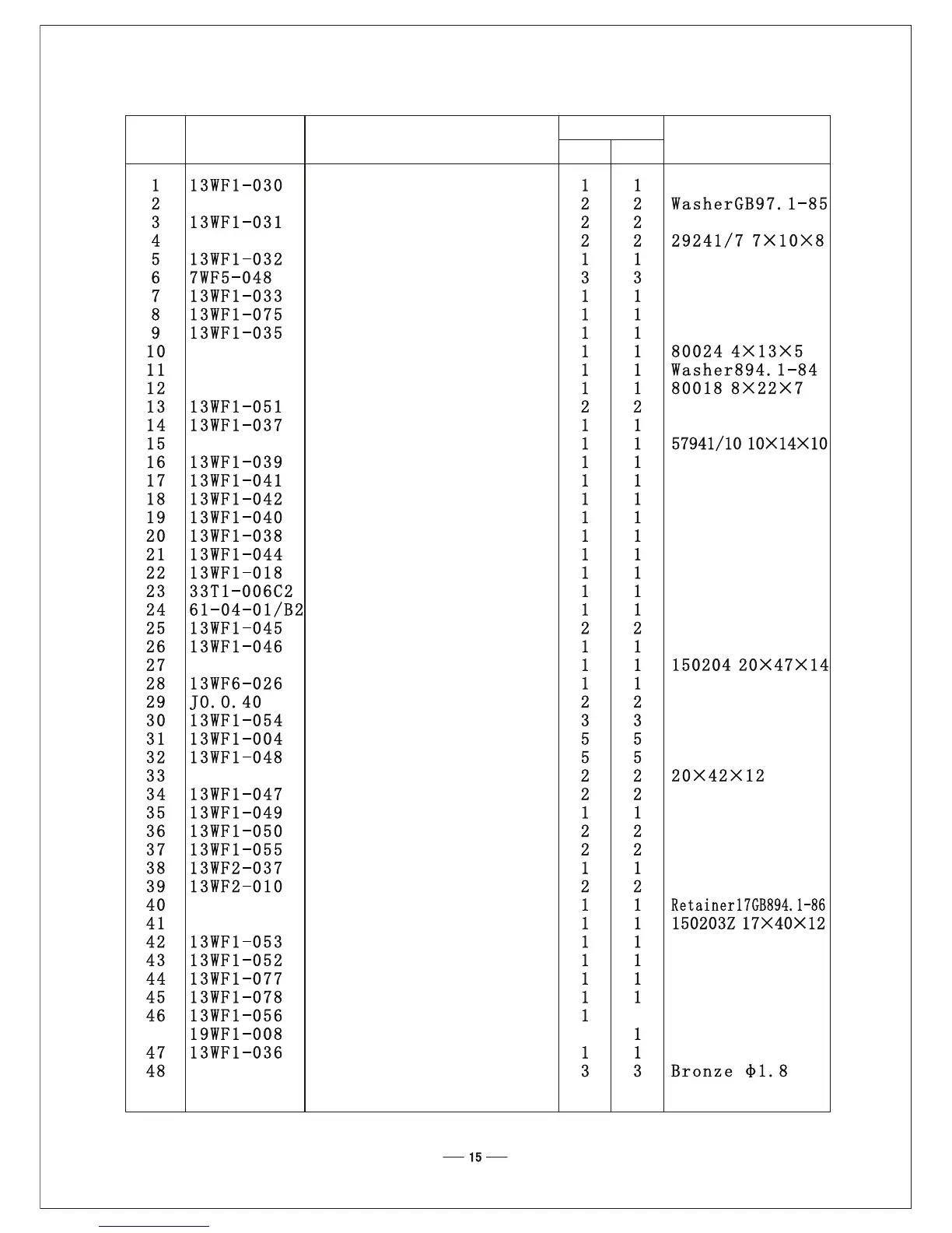 Part number Part number