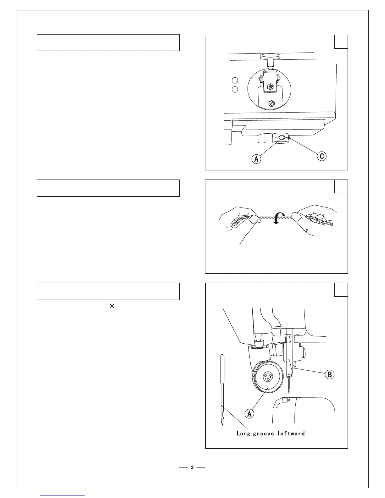 groove of the needle should be leftward, then fully