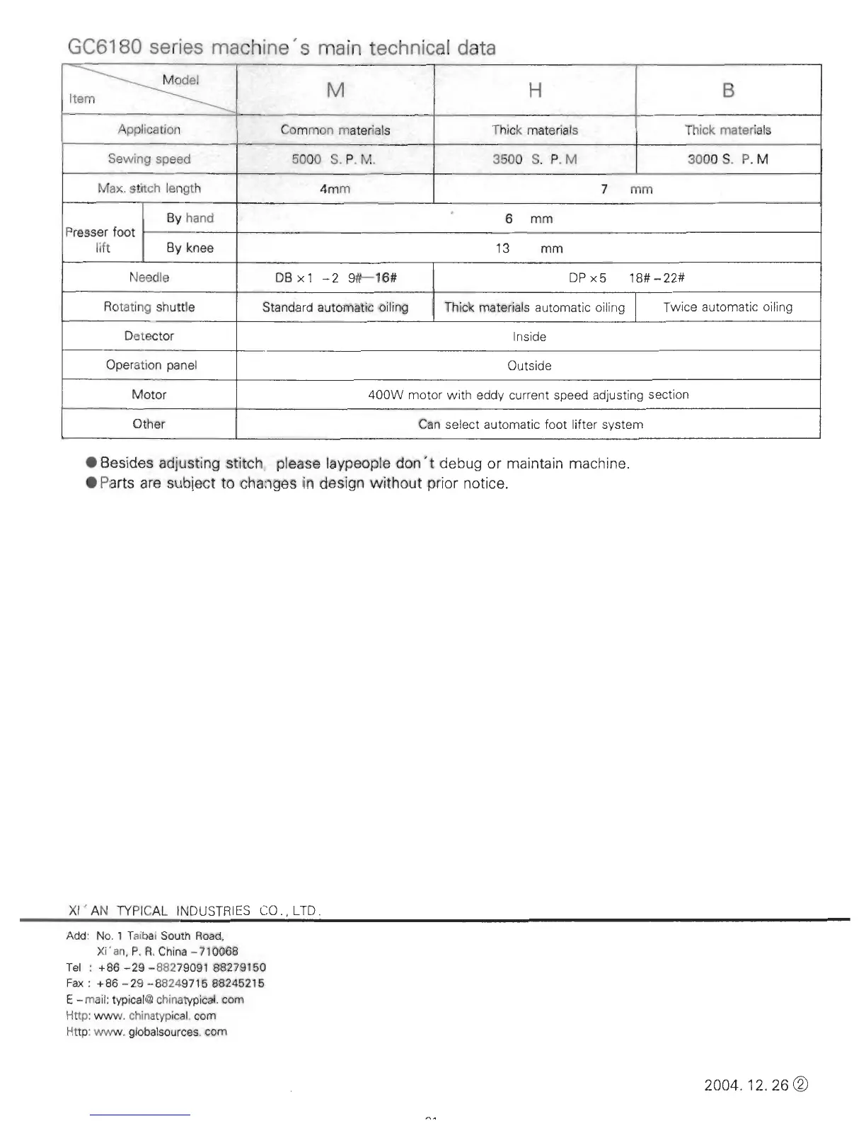 typical GC6180 - Machine Technical Data; GC6180 Specifications