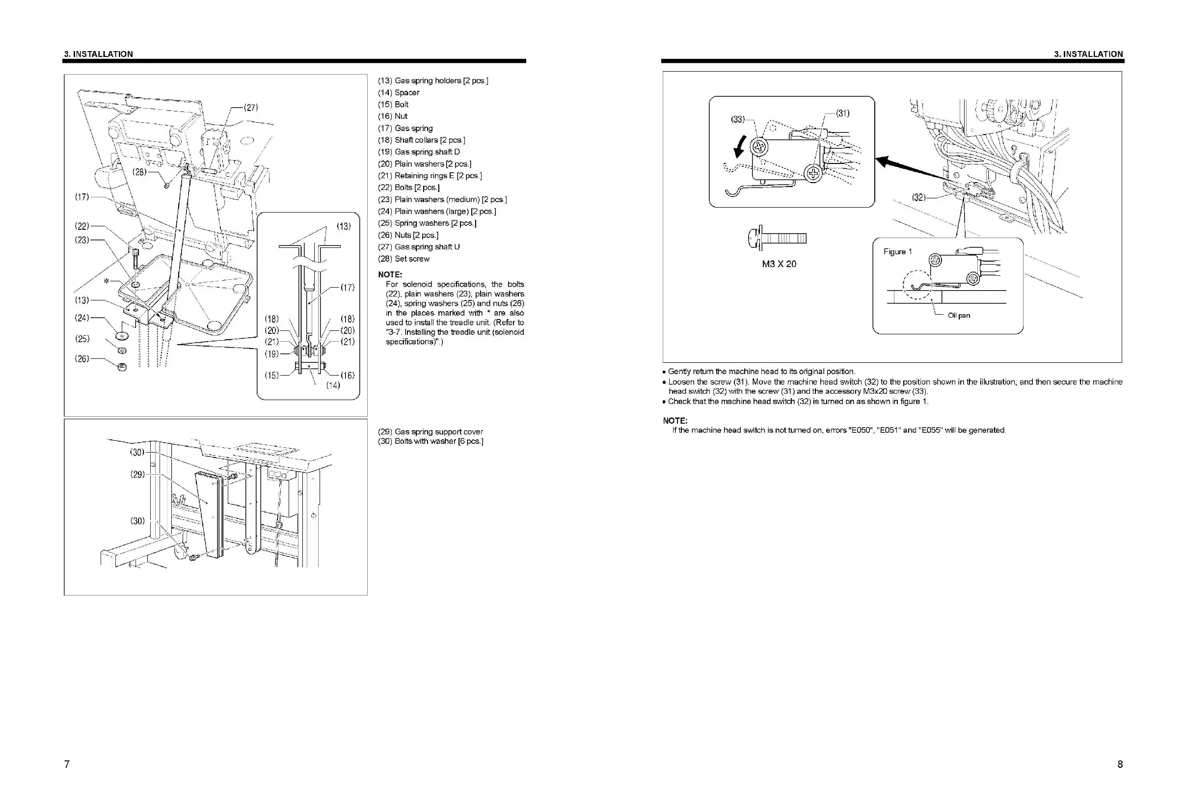 machine head switch is notturned on. errors "E050", "E051" and "E055" w