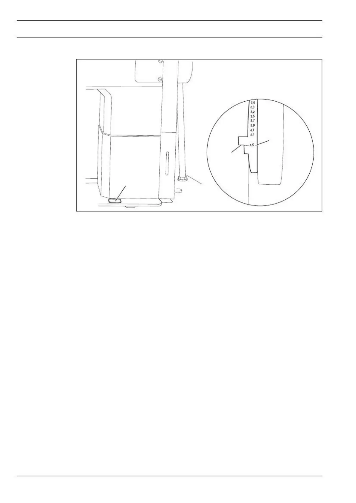 shown on the scale 2 opposite the bottom edge 3 of the belt guard recess.