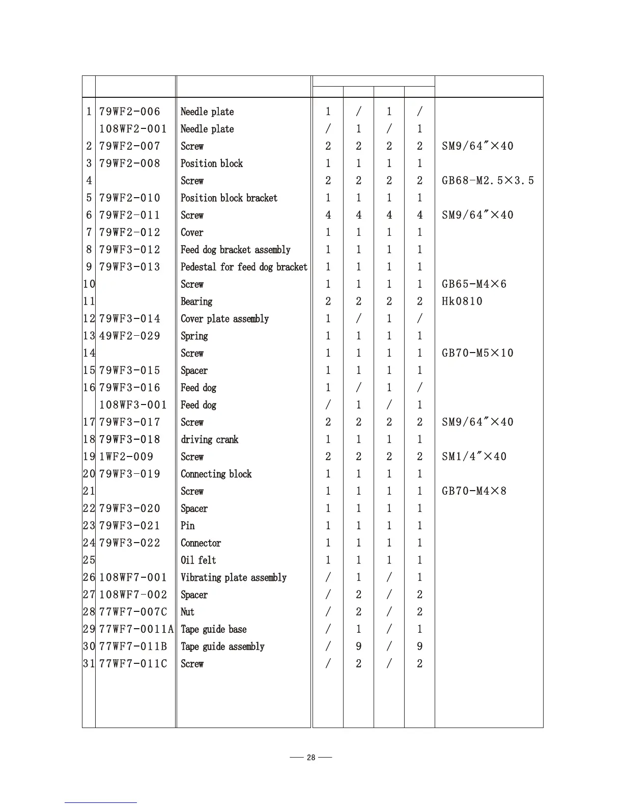 10.Lower feed components