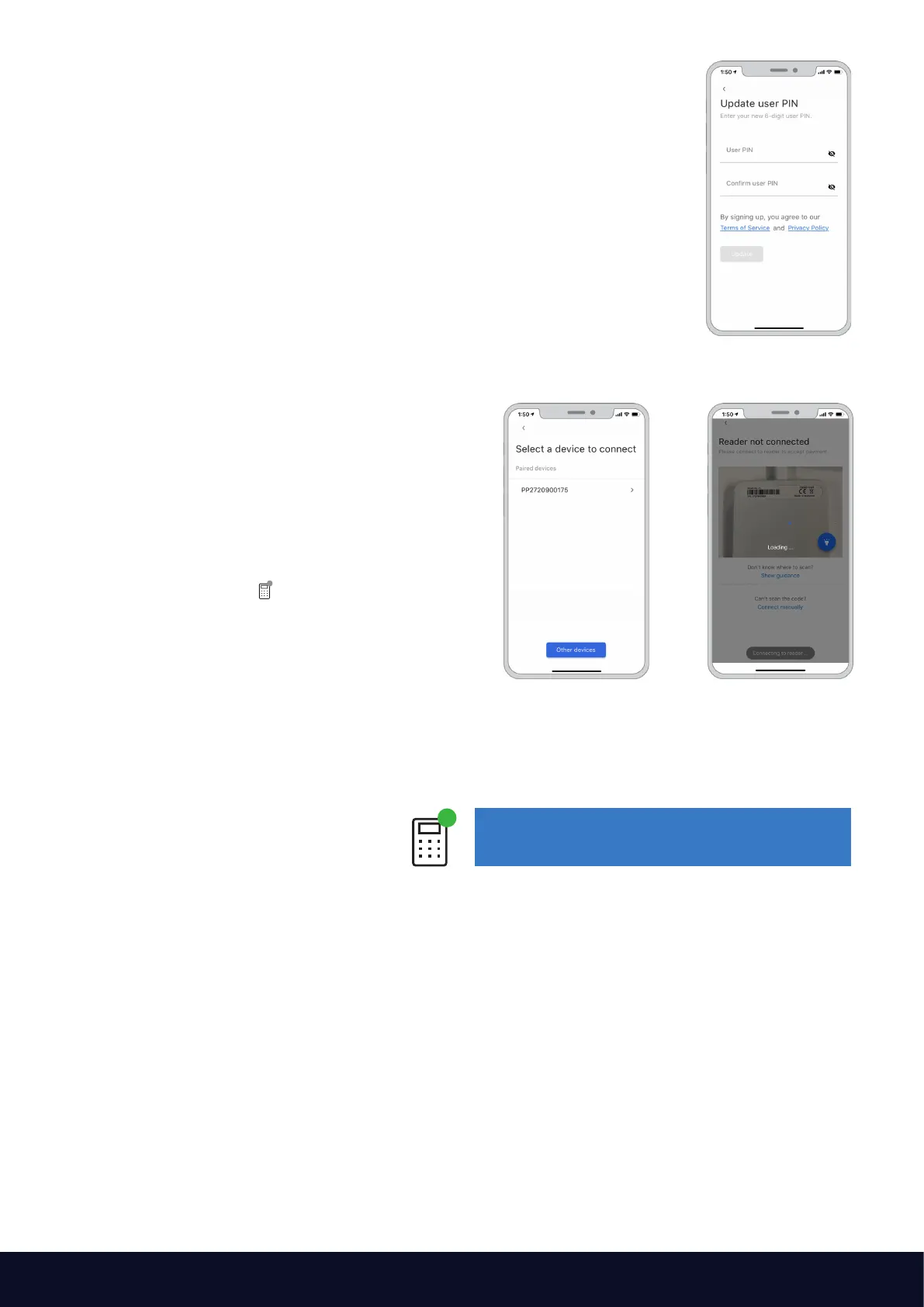 • Select "Connect to reader" and pair by: