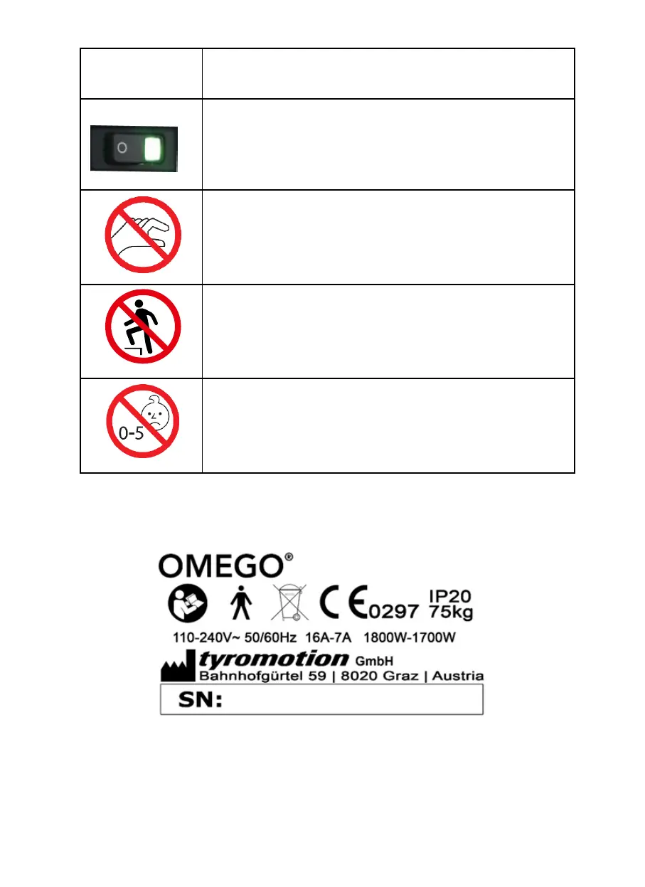 This symbol indicates that it is prohibited to touch the device’s moving foot rests