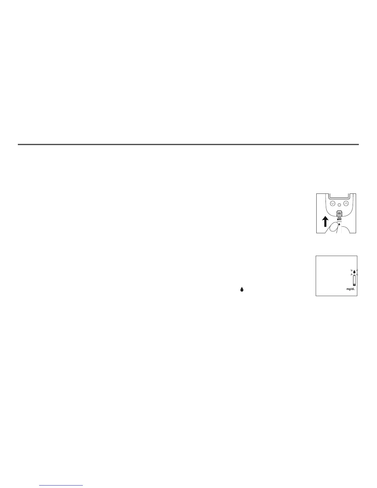 2. Insert a Tyson Bio HT100-B test strip, top side up, contact bar end rst, into the test port. The meter will