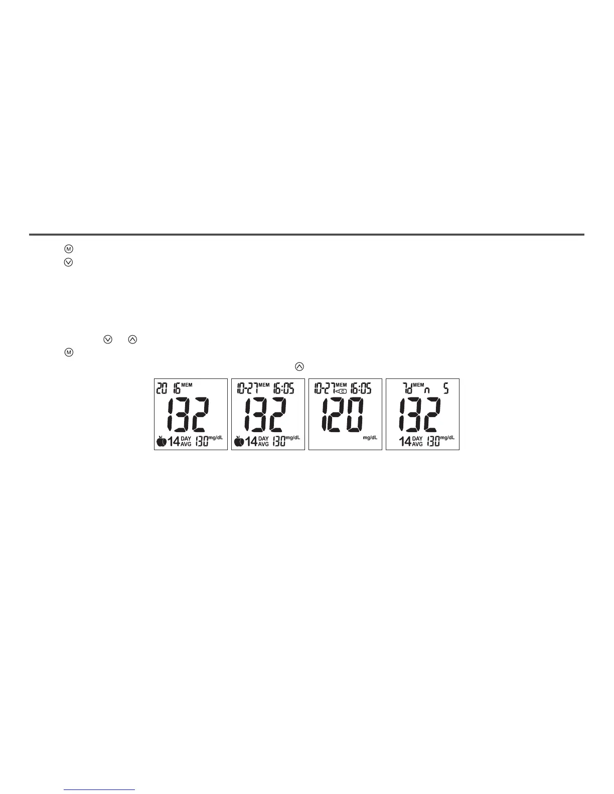 5. When the meter displays the last stored test result, press so the meter will display day average results (Fig.49).