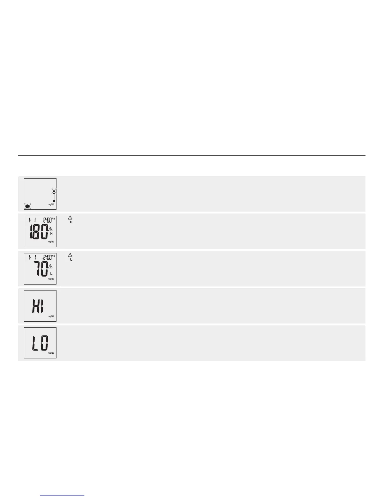 The result is HIGHER than the “HI” alert setting. The default setting is 180 mg/dL and it can be changed