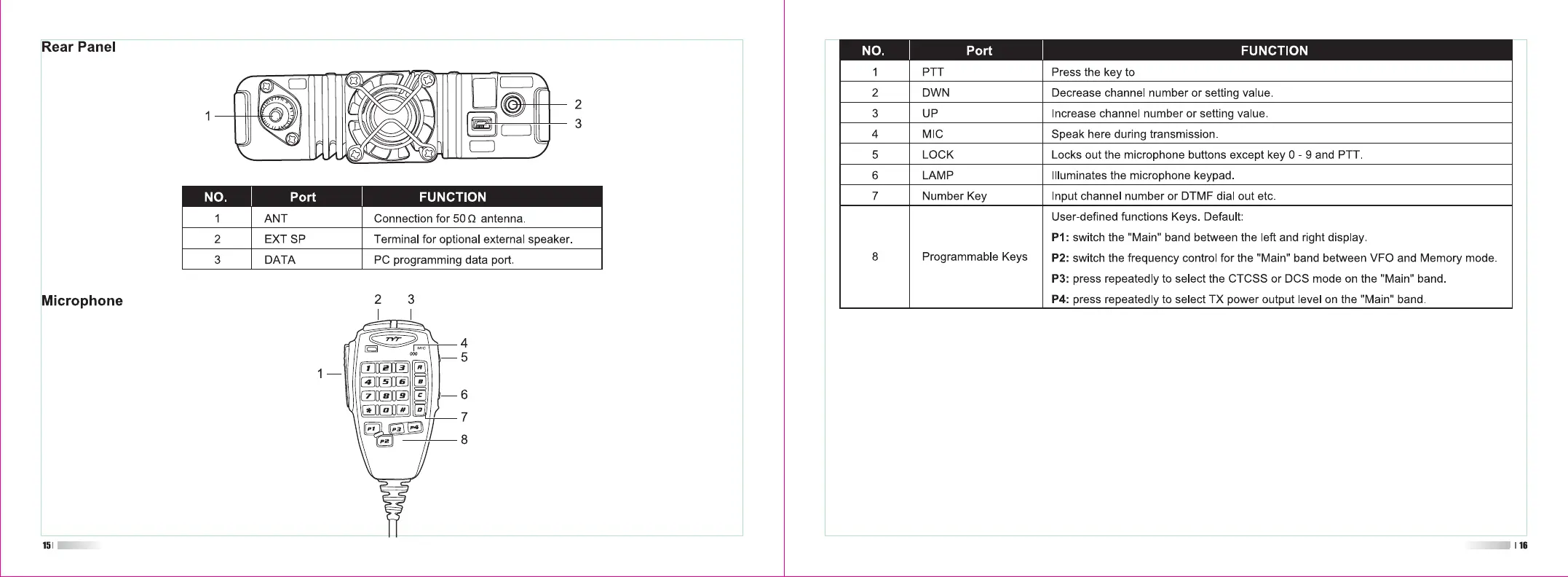TYT TH-9800 - Rear Panel and Microphone Details; Rear Panel Ports and Functions; Microphone Button Layout