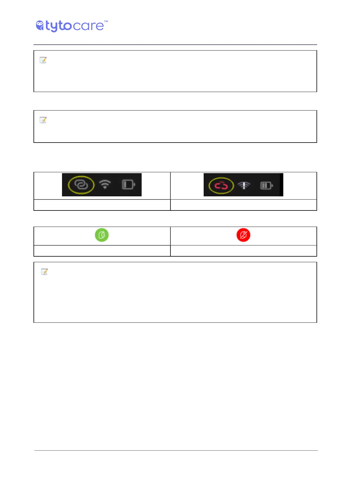 Note: The connectivity status of the Device to the TytoCare App is indicated in