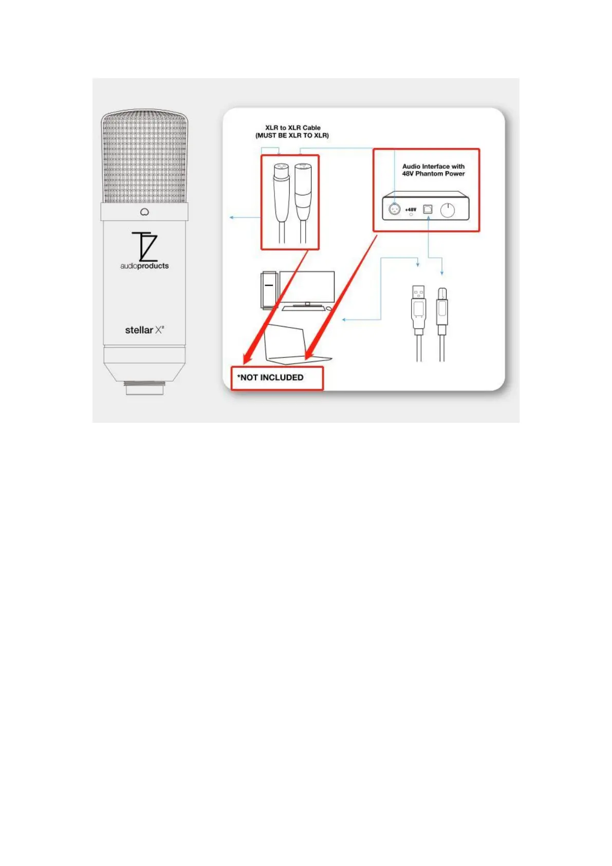 You need the XLR Cable and Interface prepared yourself