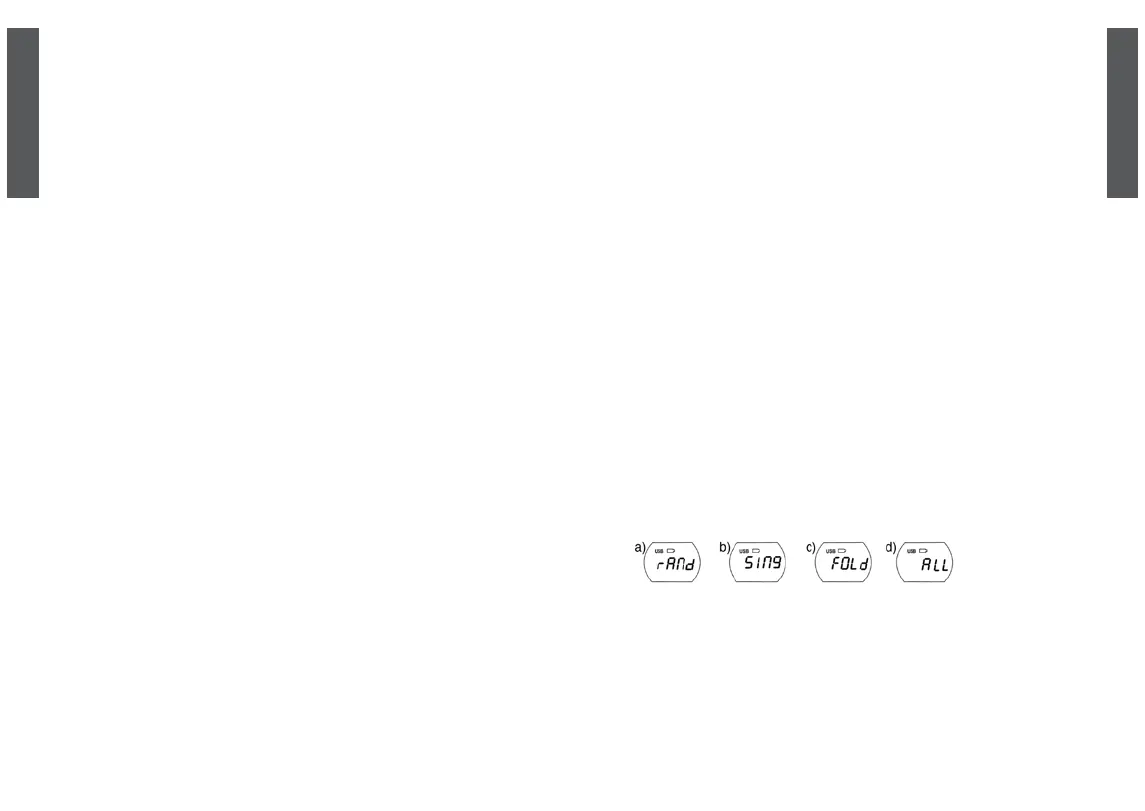 “RANDOM”, (b) “REPEAT ONE”, (c) “REPEAT THE FOLDER”, when hold the