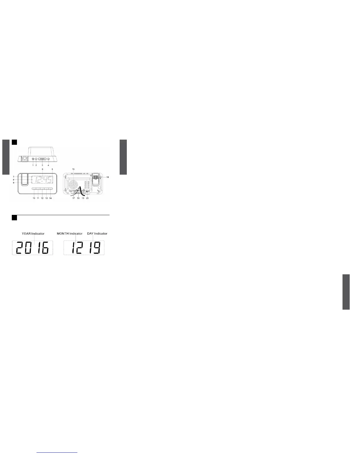 • During alarming, press Snooze button (3) will enable snooze function, Beep