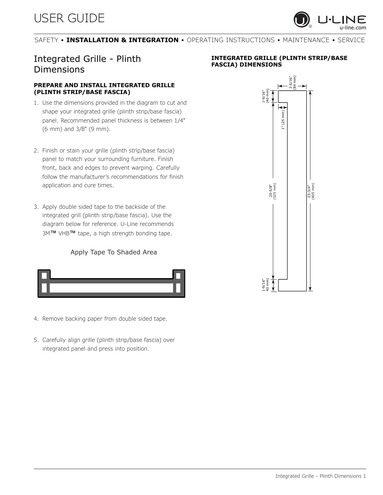 integrated grill (plinth strip/base fascia). Use the