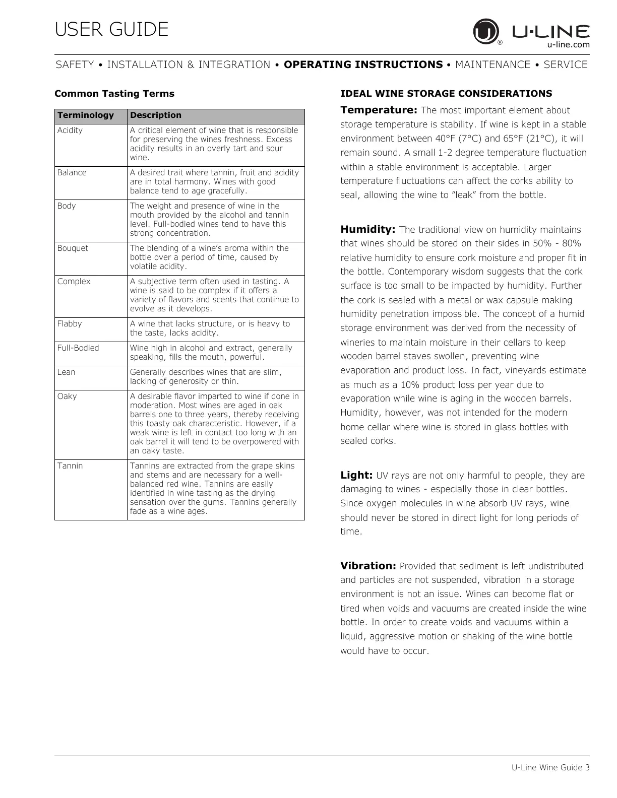 Common Tasting Terms IDEAL WINE STORAGE CONSIDERATIONS