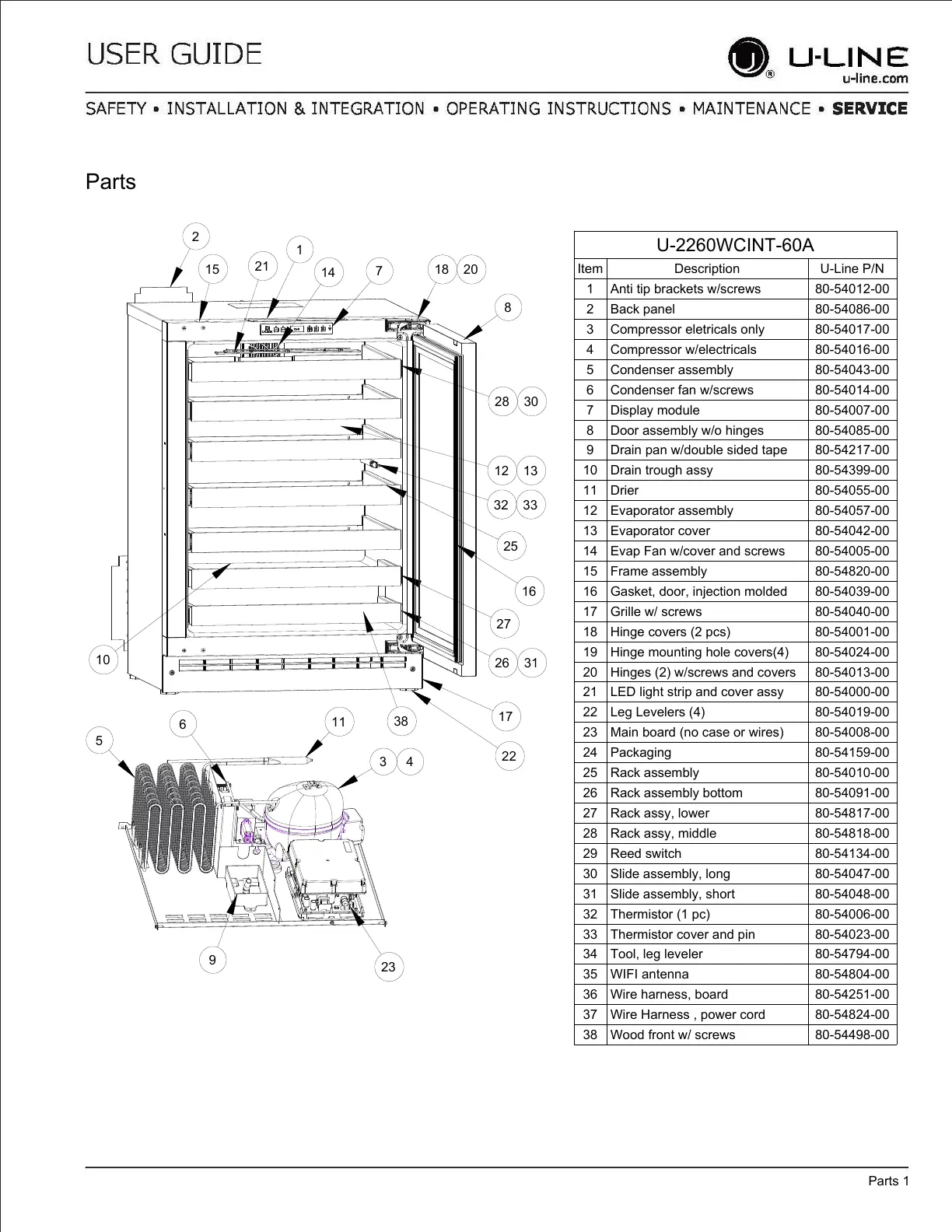 Item Description U-Line P/N