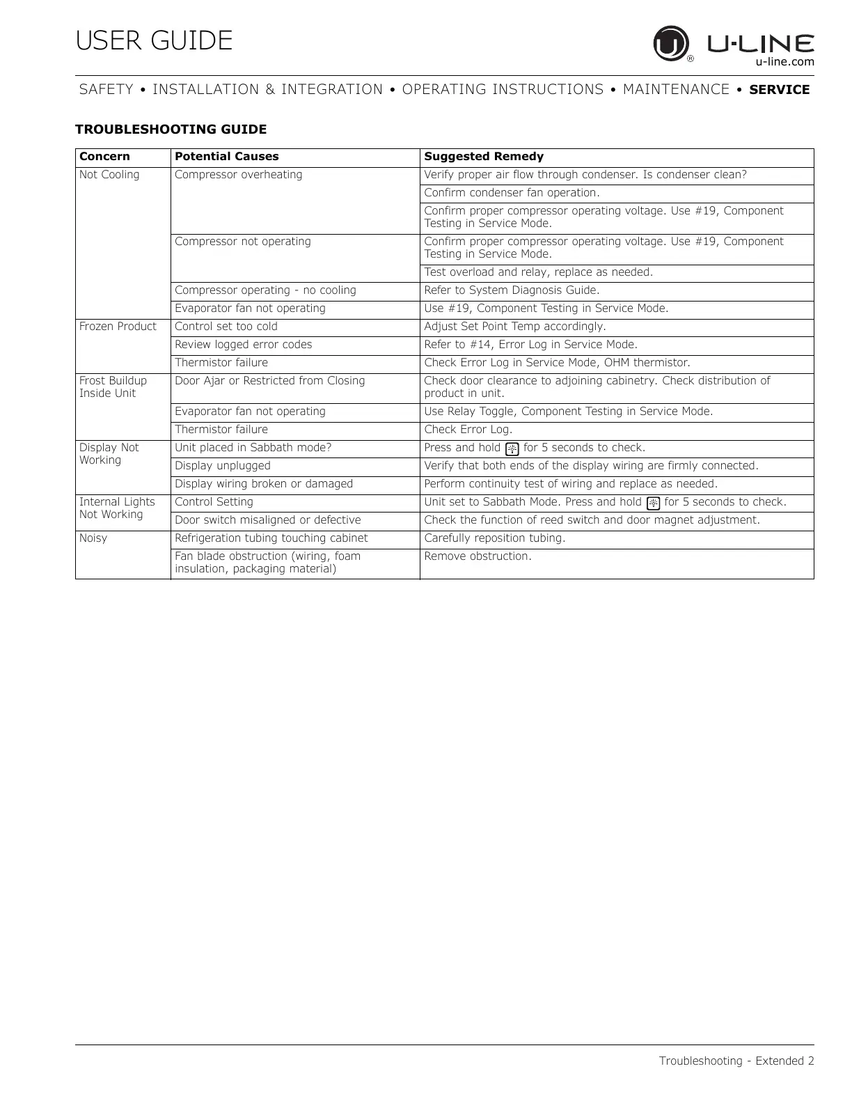 Not Cooling Compressor overheating Verify proper air flow through condenser. Is condenser clean?