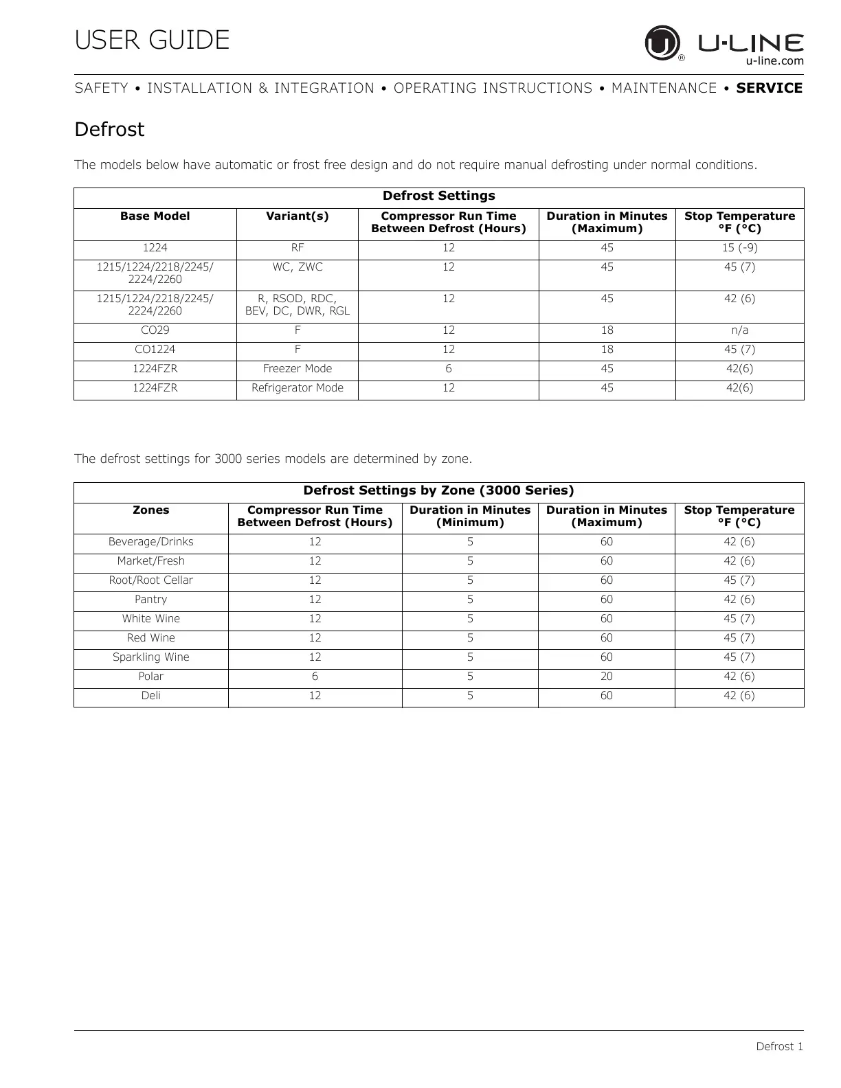 The defrost settings for 3000 series models are determined by zone.