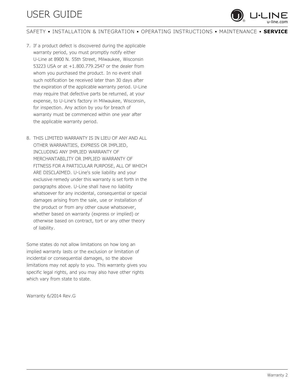 ARE DISCLAIMED. U-Line’s sole liability and your