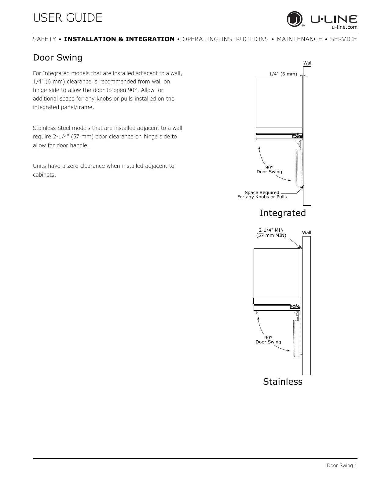 For Integrated models that are installed adjacent to a wall,