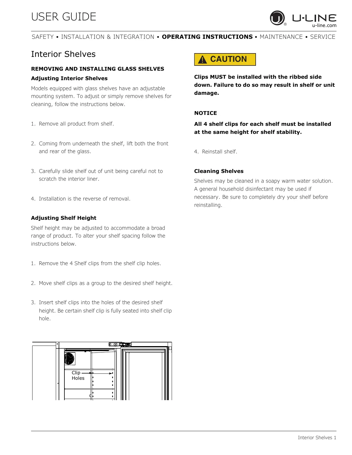 1. Remove the 4 Shelf clips from the shelf clip holes.