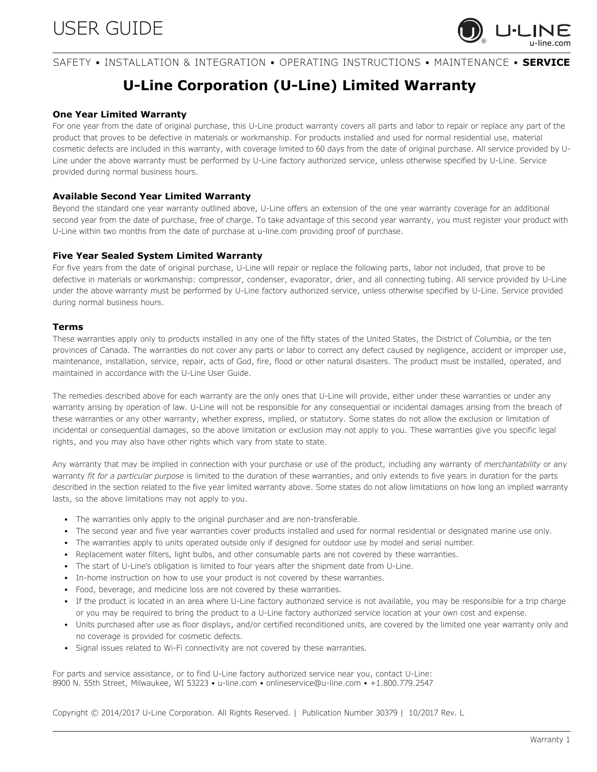 Copyright © 2014/2017 U-Line Corporation. All Rights Reserved. | Publication Number 30379 | 10/2017 Rev. L