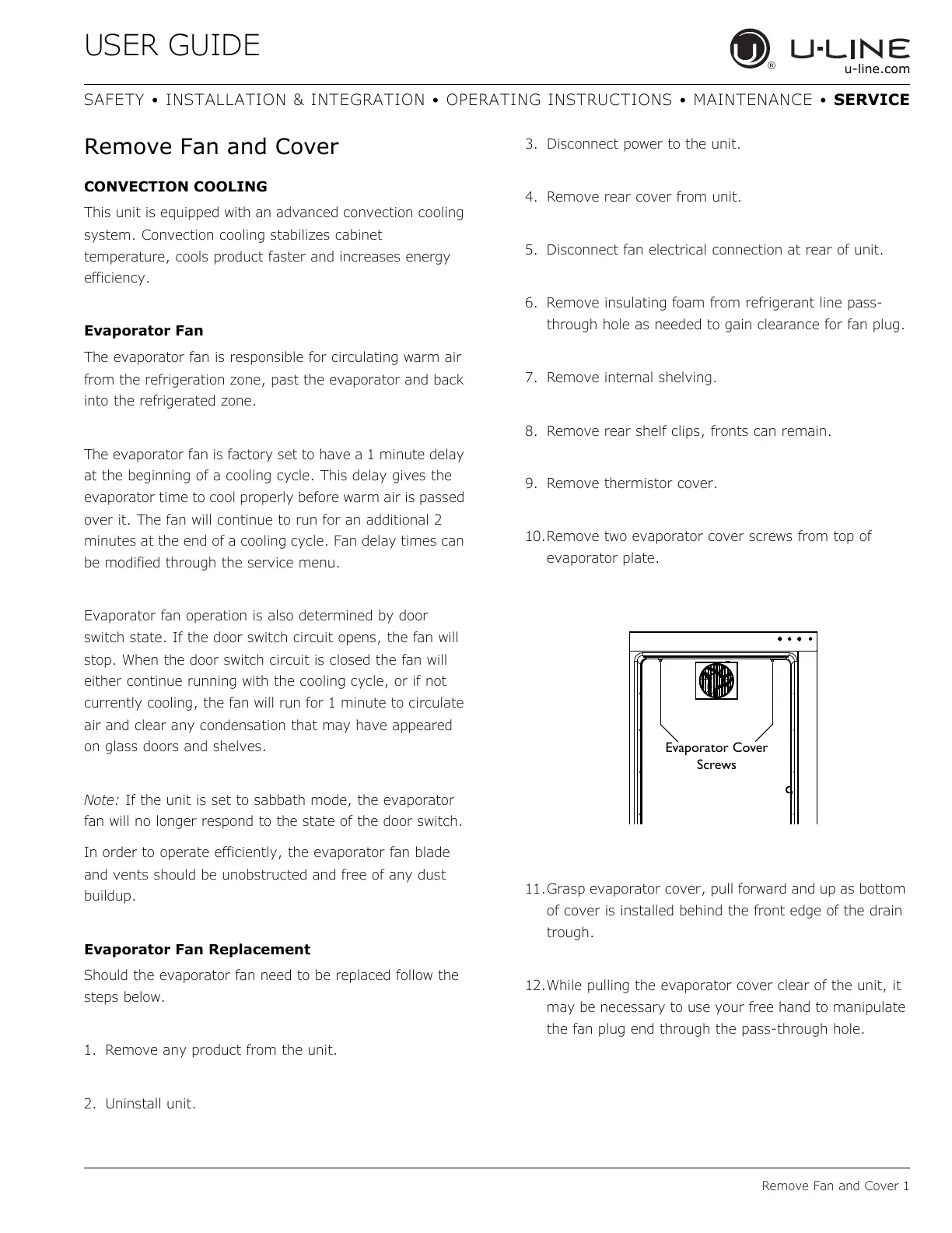 Should the evaporator fan need to be replaced follow the