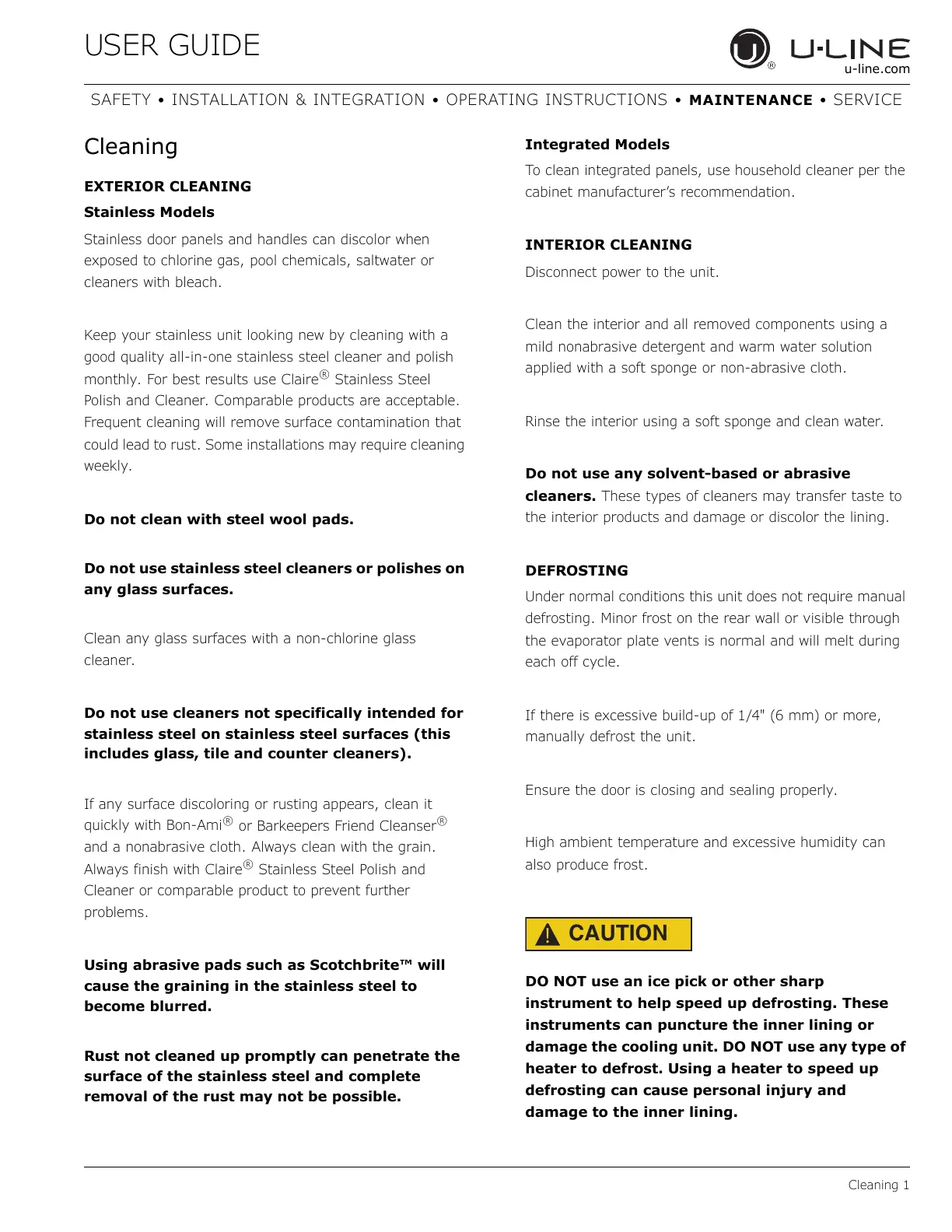 SAFETY • INSTALLATION & INTEGRATION • OPERATING INSTRUCTIONS • MAINTENANCE • SERVICE