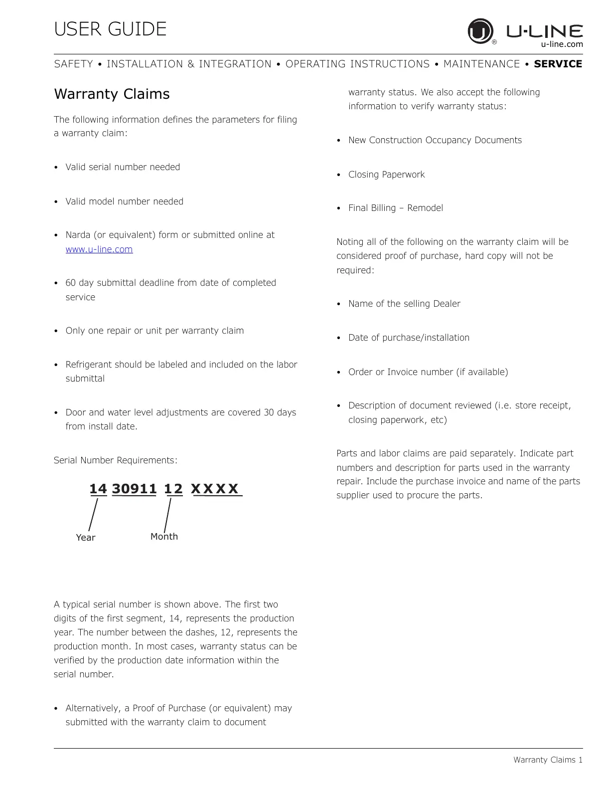 SAFETY • INSTALLATION & INTEGRATION • OPERATING INSTRUCTIONS • MAINTENANCE • SERVICE