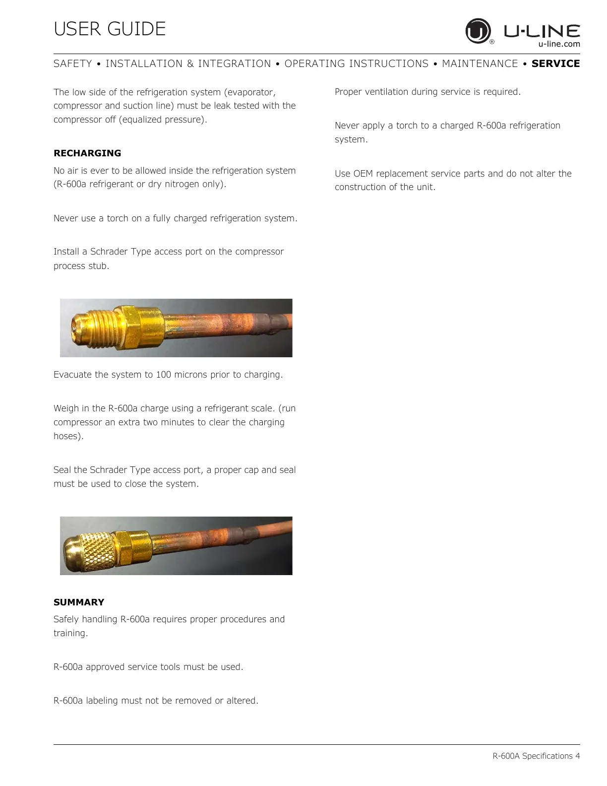 Weigh in the R-600a charge using a refrigerant scale. (run