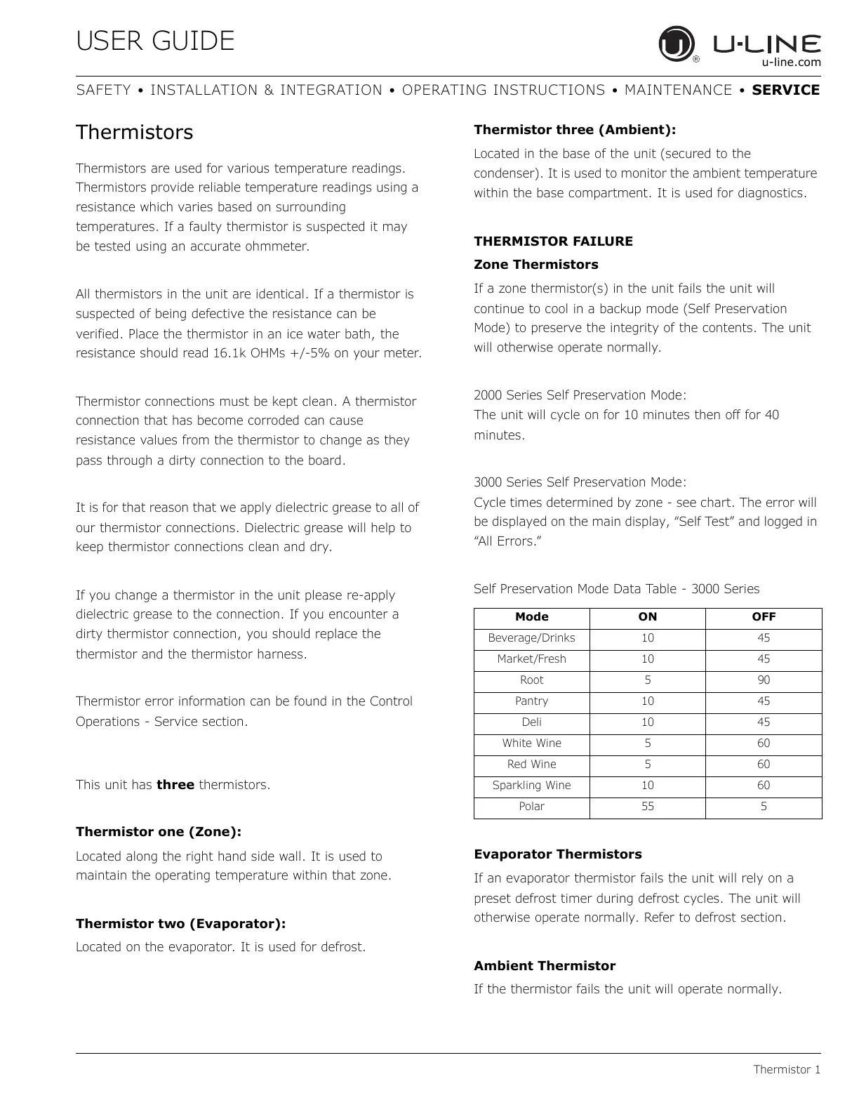 If the thermistor fails the unit will operate normally.