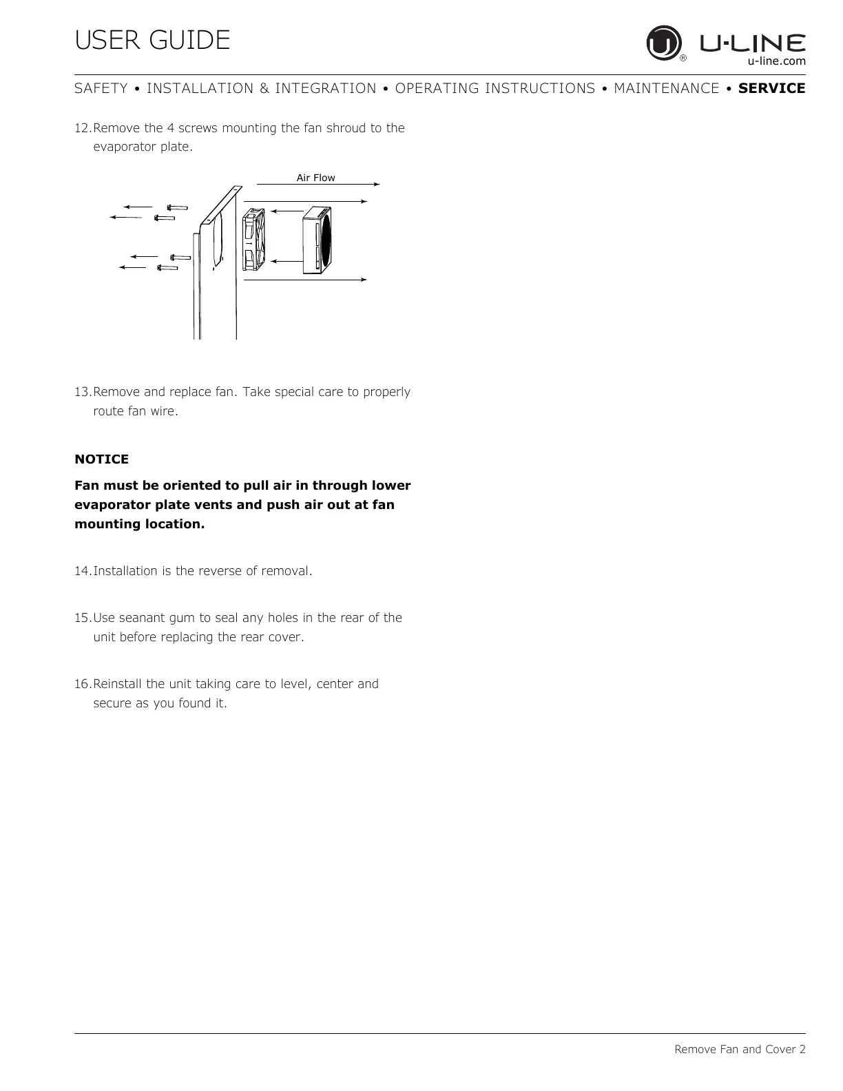 13.Remove and replace fan. Take special care to properly