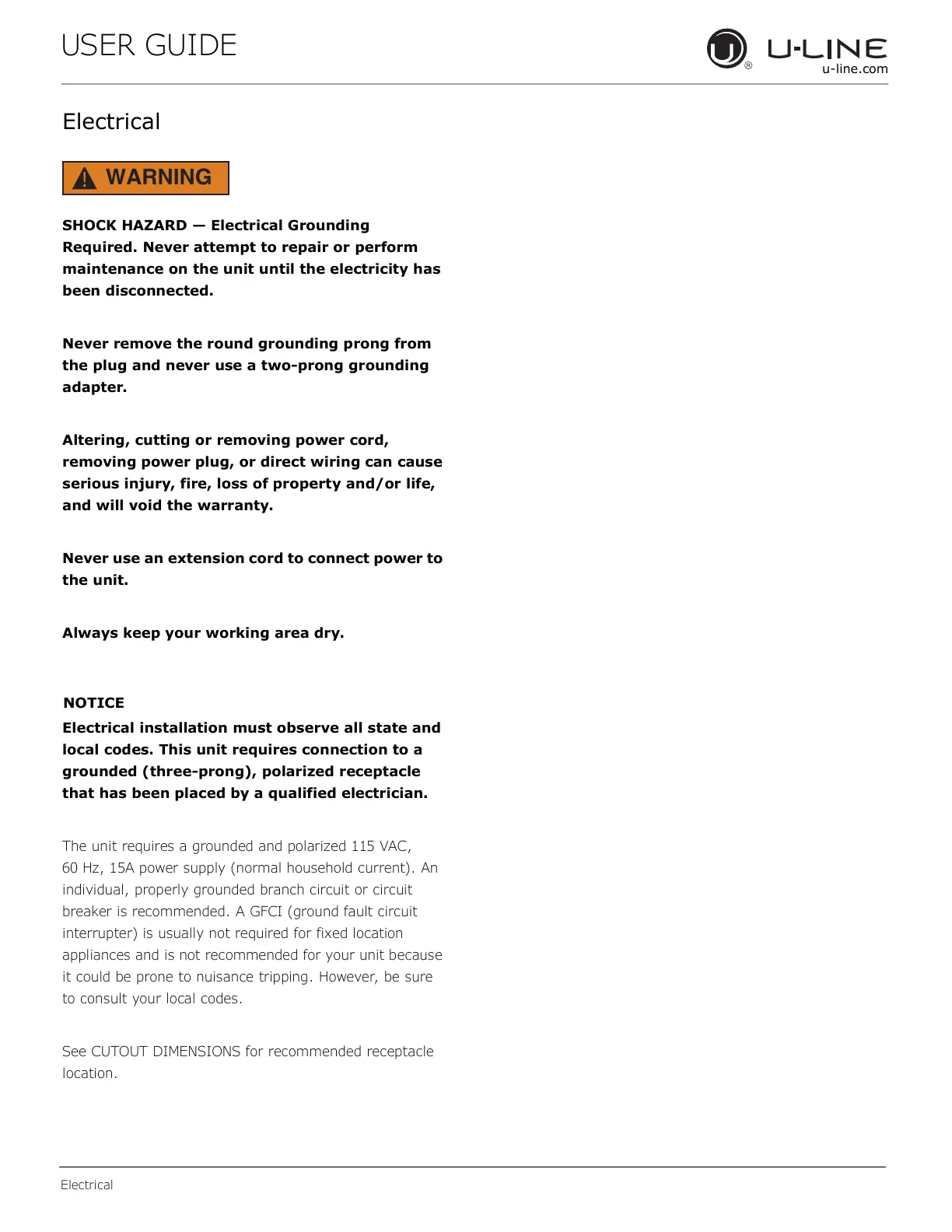 SHOCK HAZARD — Electrical Grounding