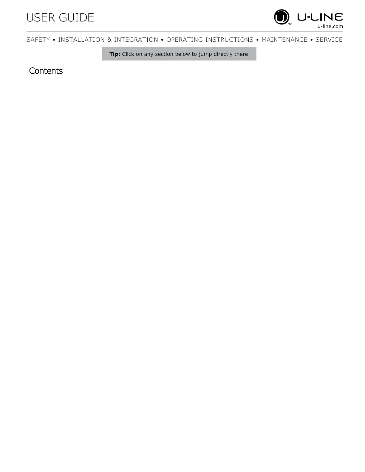 SAFETY • INSTALLATION & INTEGRATION • OPERATING INSTRUCTIONS • MAINTENANCE • SERVICE