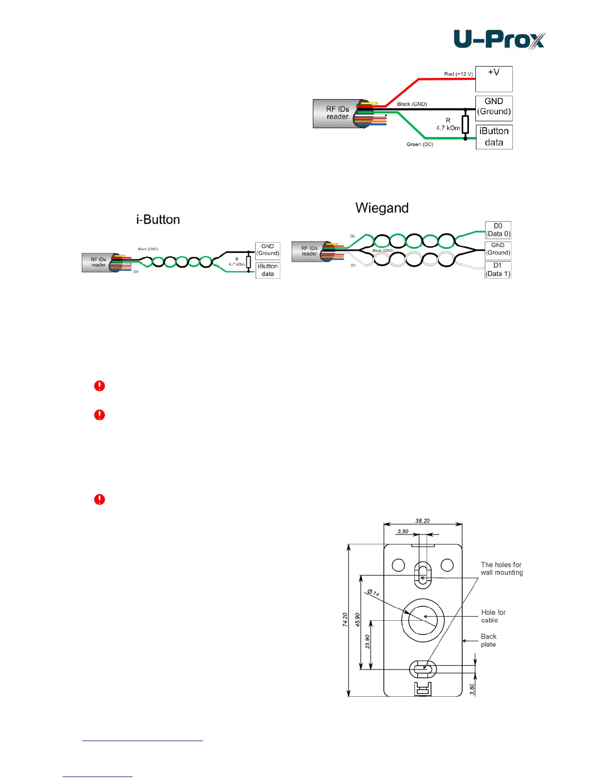 It is recommended to mount the reader on a wall closely to a door at appropriate height.