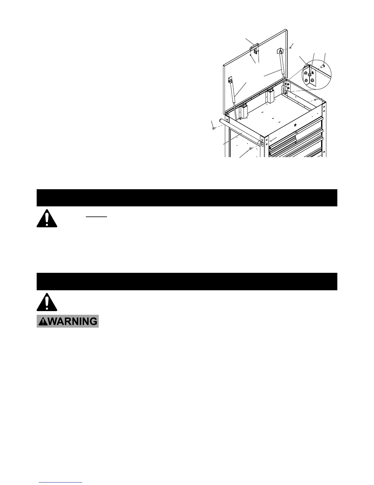 12. Attach Gas Struts (20) using four Nuts (13).