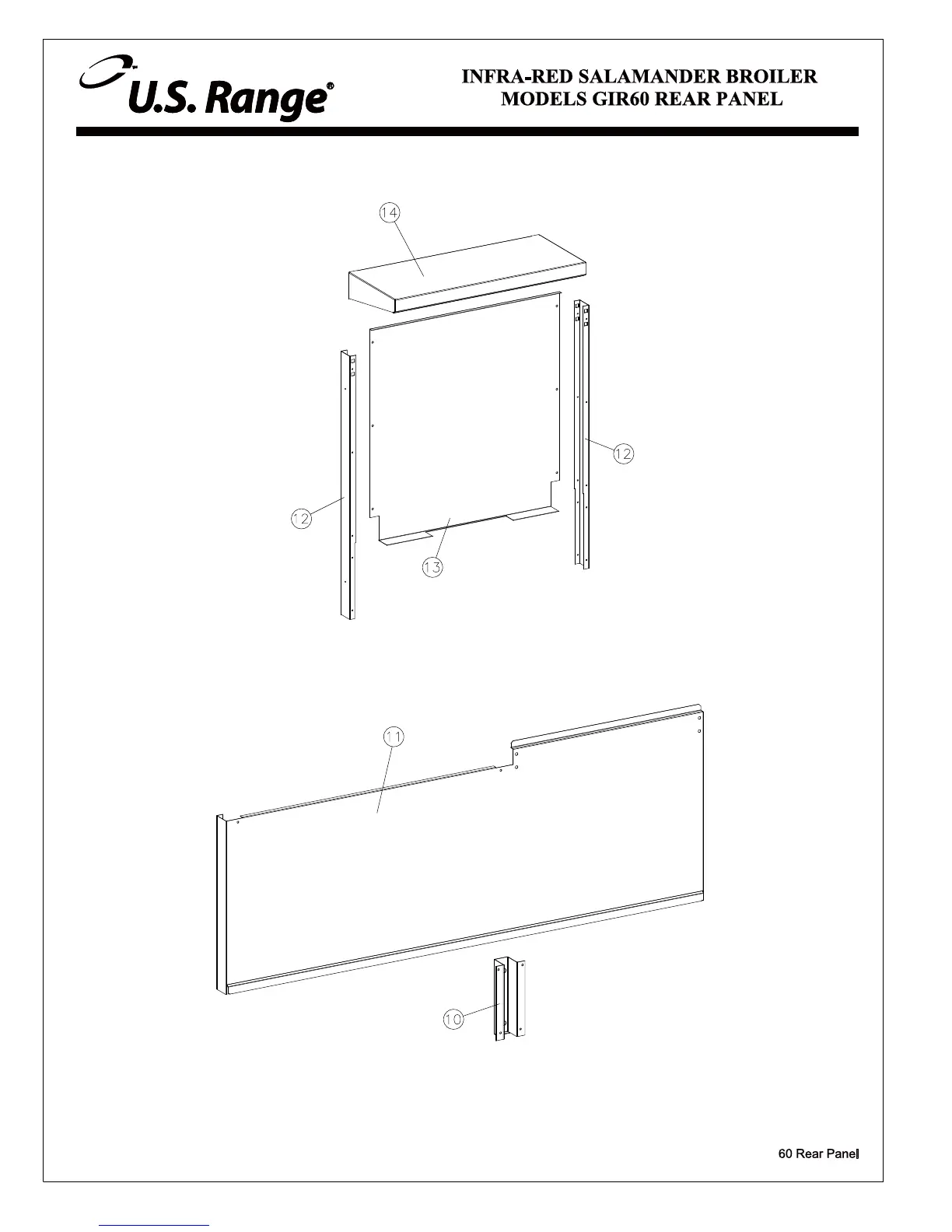 U.S. Range UIR36 - U.S. Range GIR60 Salamander Broiler Rear Panel Diagram