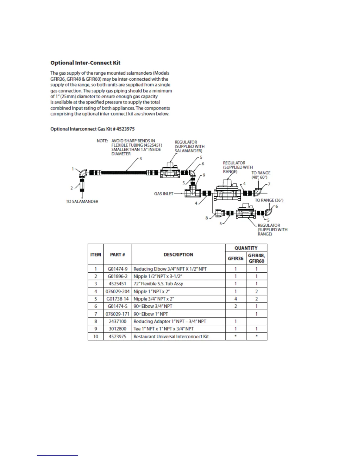U.S. Range UIR36 - U.S. Range Optional Inter-Connect Gas Kit; Inter-Connect Kit Components and Installation