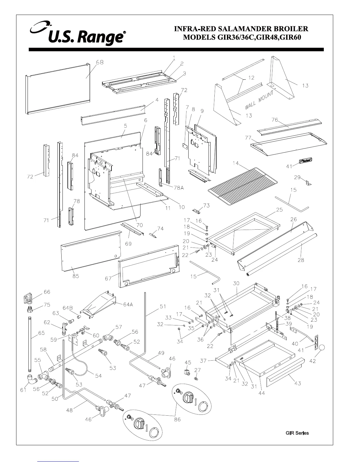 U.S. Range UIR36 - U.S. Range GIR Series Salamander Broiler Parts Diagram