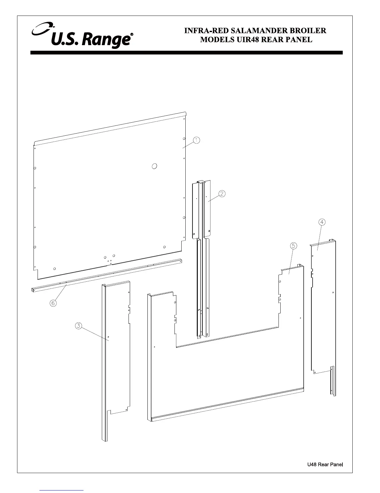 U.S. Range UIR36 - U.S. Range UIR48 Salamander Broiler Rear Panel Diagram