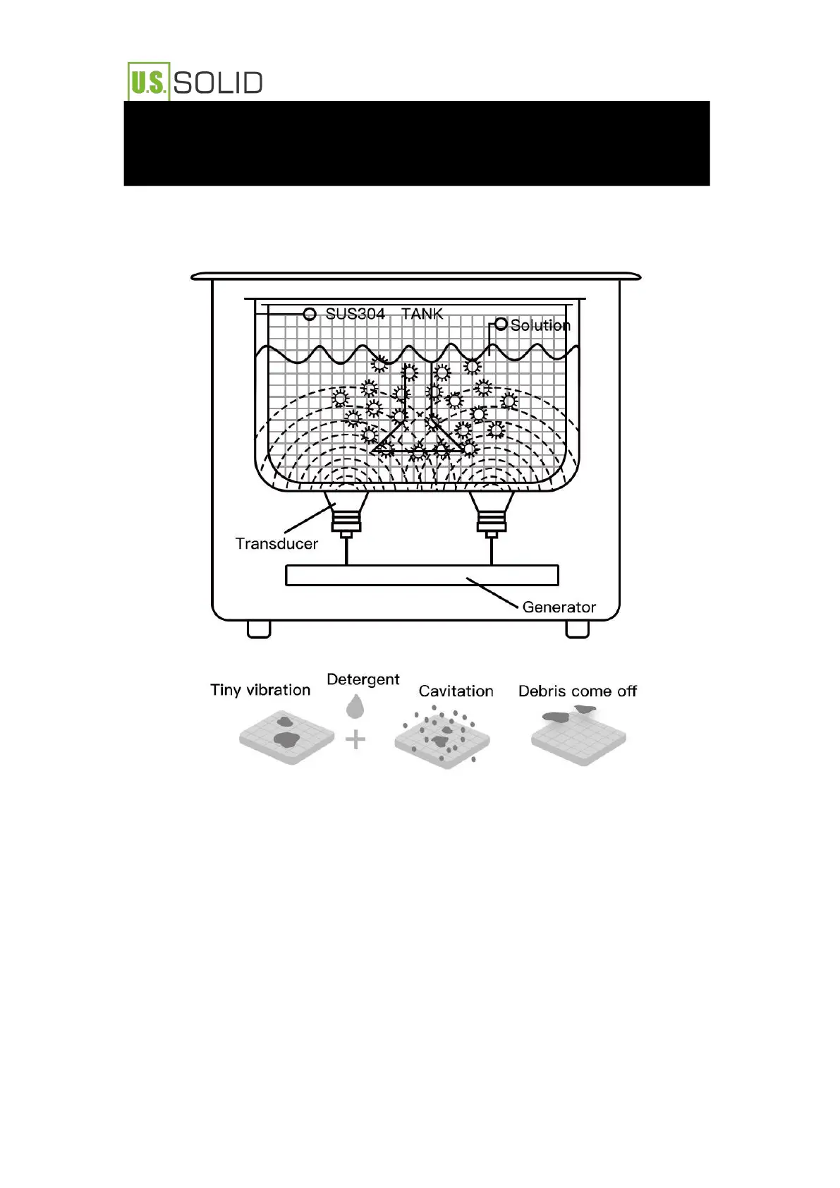 sound through the solution in the tank inducing cavitation in liquid. As the cavitation