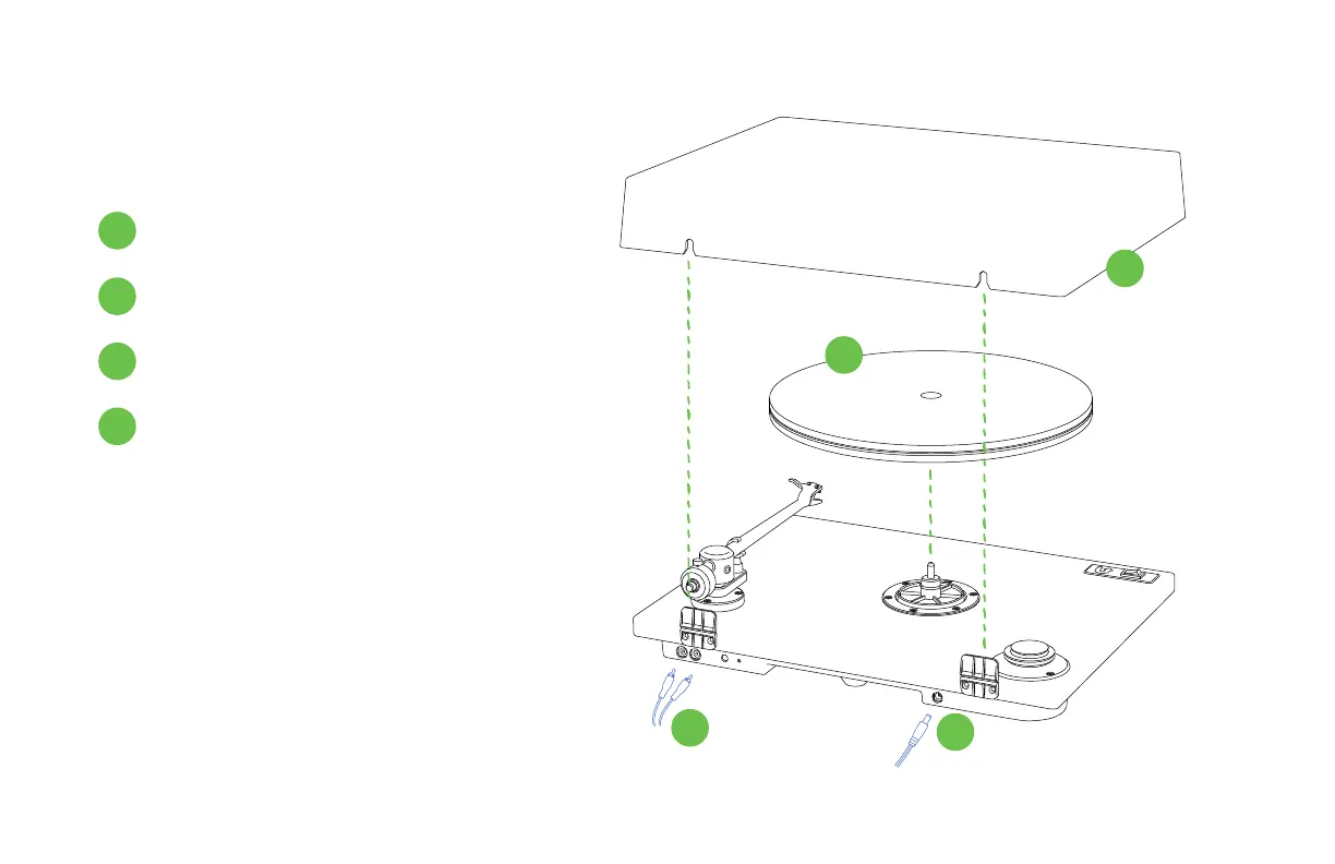 U-Turn Orbit - Getting Started; Place Platter on Spindle; Attach Dust Cover; Connect Power Adapter