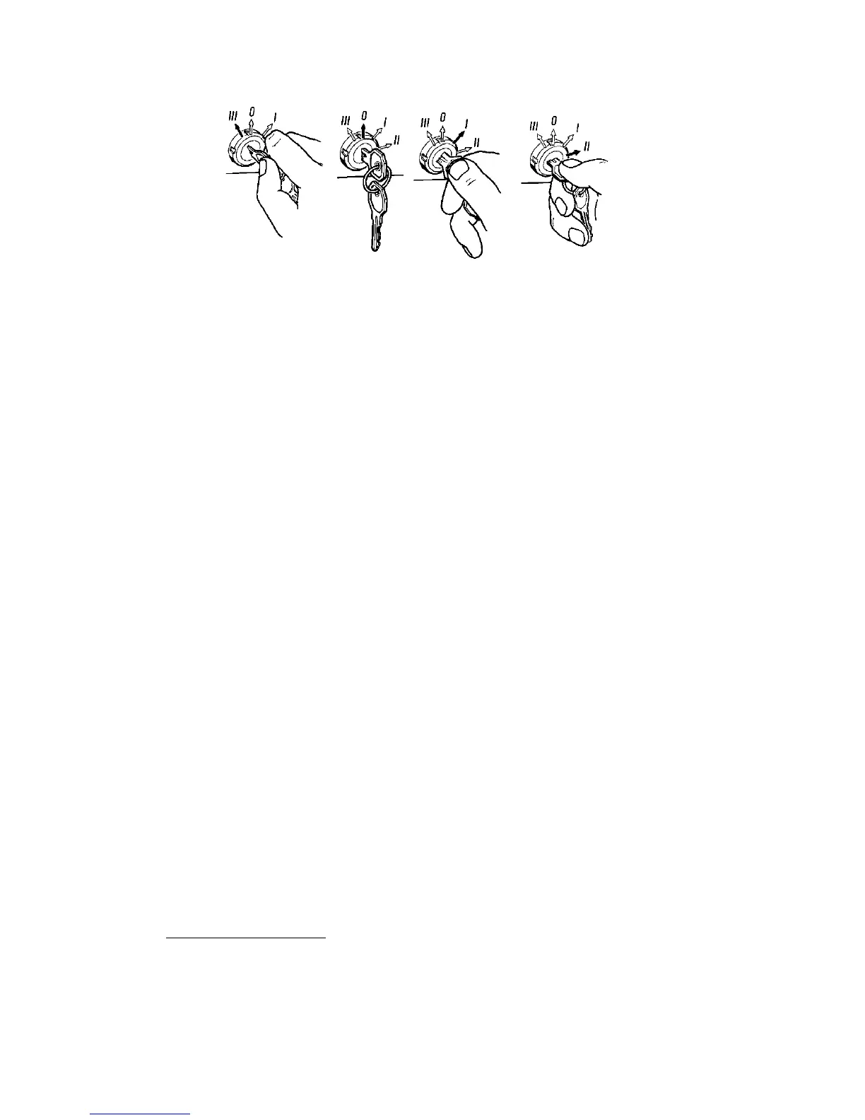 Î -neutral position; I -ignition ON; II -ignition and starter ON; III -radio ON